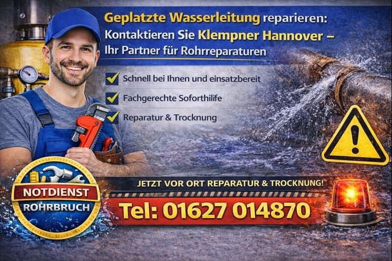 Bei einer geplatzten Wasserleitung ist schnelles und fachgerechtes Handeln entscheidend. Klempner Hannover bietet zuverlässigen Sanitärtechnik-Service und repariert Wasserschäden normgerecht ab 58€ – jetzt sofort anfragen und Folgeschäden vermeiden.