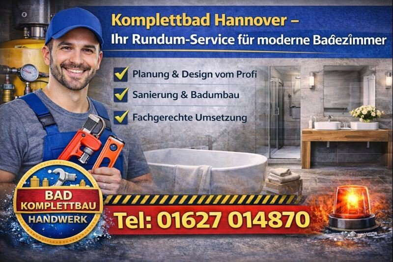 Als regionaler Fachbetrieb bietet Klempner Hannover die komplette Badsanierung aus einer Hand – inklusive Planung, Sanitärinstallation, Fliesenarbeiten, Elektroanschlüssen und Endmontage. Dank transparenter Abläufe und fairer Preise ab 58 € erhalten Sie ein langlebiges, technisch sauberes und optisch überzeugendes Komplettbad, das genau auf Ihre Anforderungen abgestimmt ist.